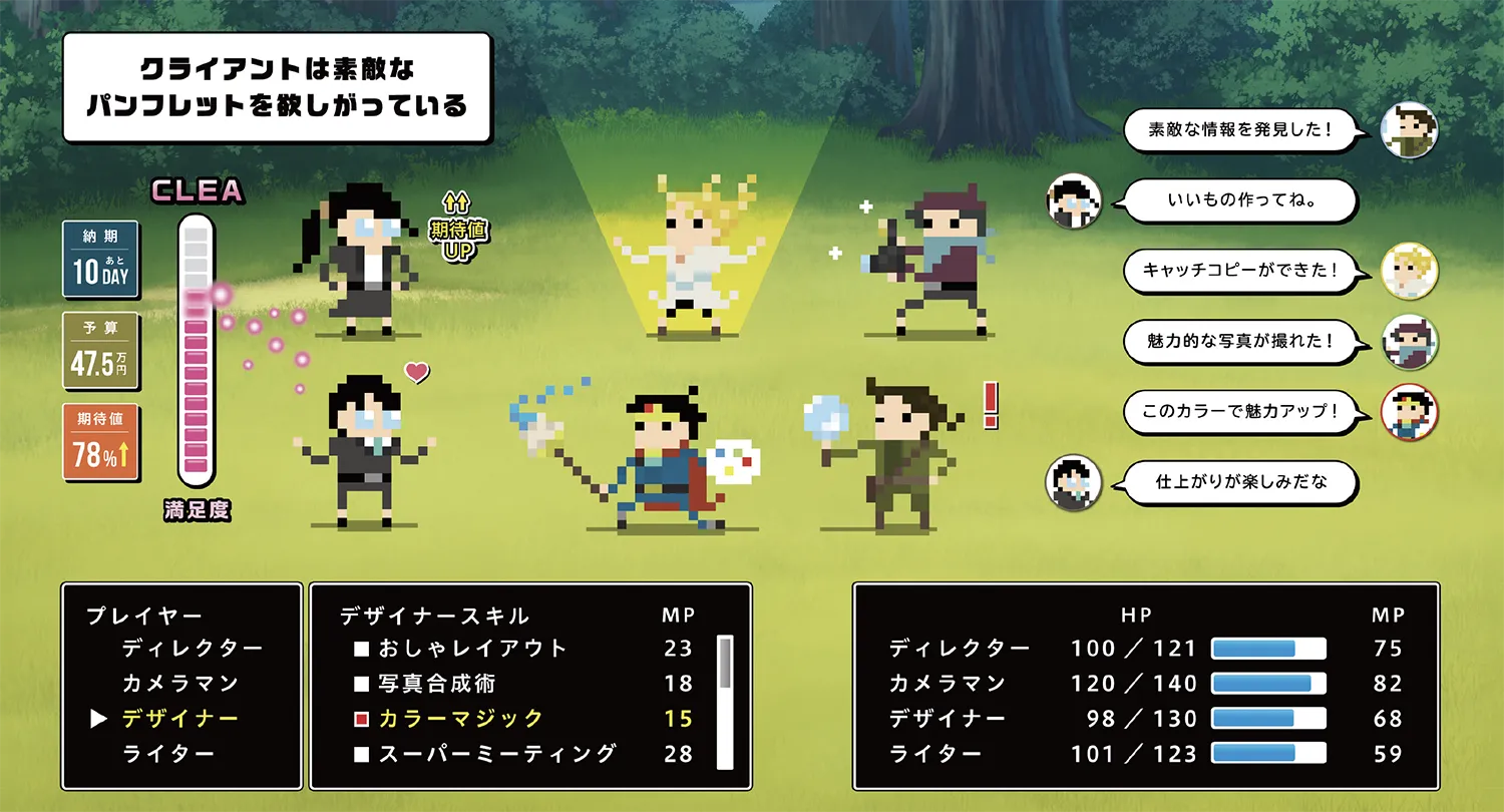 チームごとにそれぞれの「技」を活かし、クライアントに喜んでもらえる、目的達成のためのデザインを仕上げていきます。
