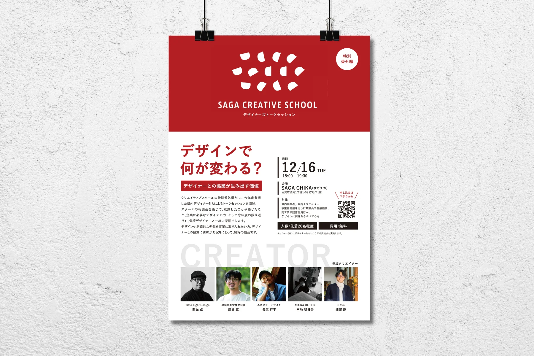 今年度SAGA CREATIVE SCHOOLに登壇した5名のデザイナーが一堂に会し、特別トークセッションを開催します。